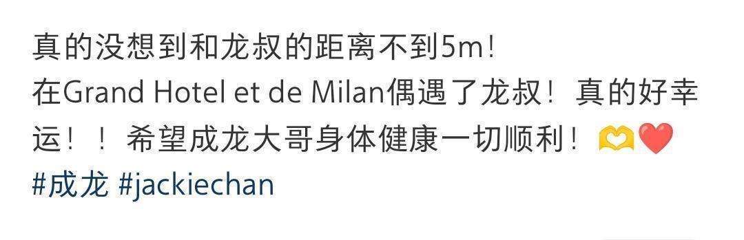 6. **结尾:最难的不是当巨星,而是做一个懂得回头的父亲** 许多人在年轻时拼命追赶,到了中年才意识到,真正支持自己的人其实一直在身旁。『成龙』在米兰给人带来的,不是71岁仍充满战斗力的激情,而是71岁依然愿意尝试柔和的那份关怀。他是否佩戴婚戒,外界难以得知答案;而他和儿子的亲密程度,旁人更不应轻易评判。