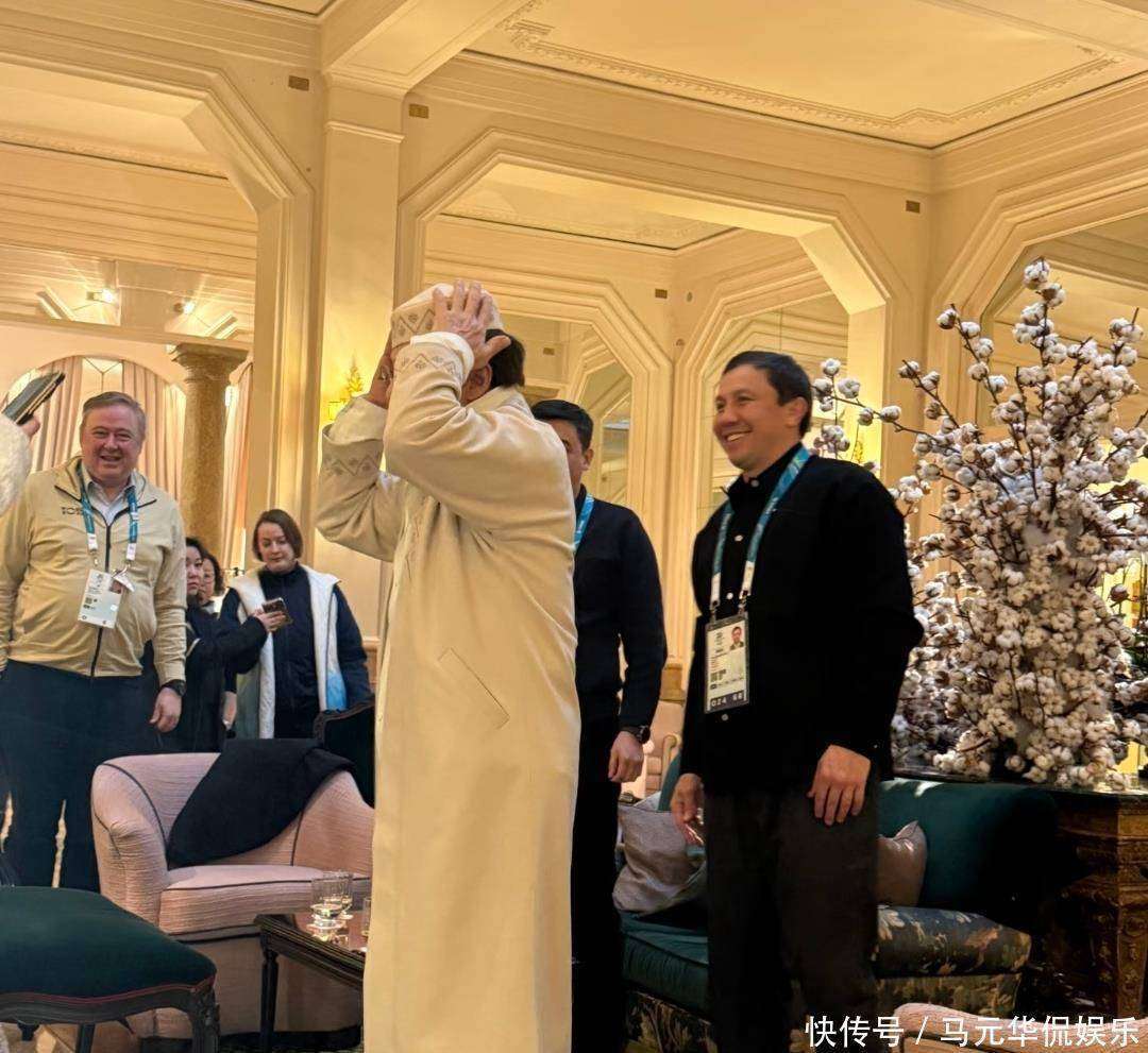 离开场馆后,拳击手戈洛夫金将『成龙』拉到一旁合影留念,戈洛夫金直接拿出了当地特色的服装,帮『成龙』换上了那件外套🧥和帽子。身旁的工作人员笑得前俯后仰,『成龙』也毫不拘束,随手整理了一下衣领,举手投足间,仿佛他是在朋友婚礼上担任伴郎一样自然。这些细节透露出他对被喜爱这件事早已习惯,但他从不觉得这是理所当然。