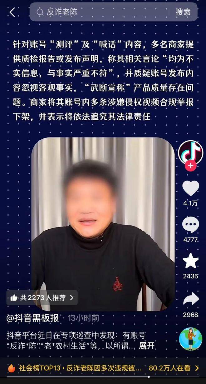 然而,谁也没想到,老陈在爆红之后,竟渐渐迷失在了流量的漩涡中。大约在走红一年后,他不顾身边人的劝阻,选择辞去公职,理由是想带团队做反诈工作室。那时,许多网友便开始担心,脱离了体制的庇护,单靠流量的网红之路恐怕并不好走。如今,这些担忧已经变成了现实。最近,『抖音』官方发布通报,宣布封禁了反诈老陈160多万粉丝的主账号,甚至与之关联的老陈的农村生活账号也没能逃脱封禁的命运。