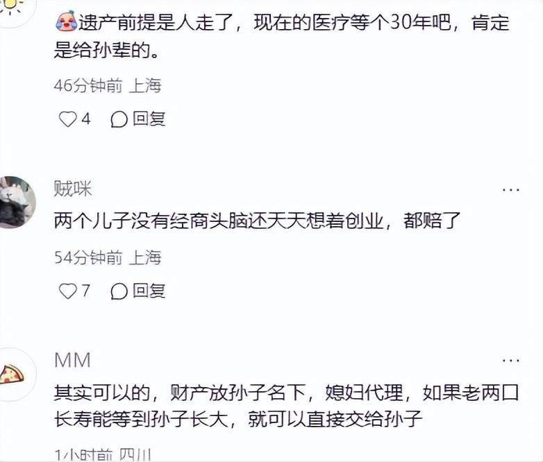 也有网友觉得他只是在这视频里装大气,如果真是想把遗产给儿媳妇早就悄悄做了,而不是在各平台到处爆料。