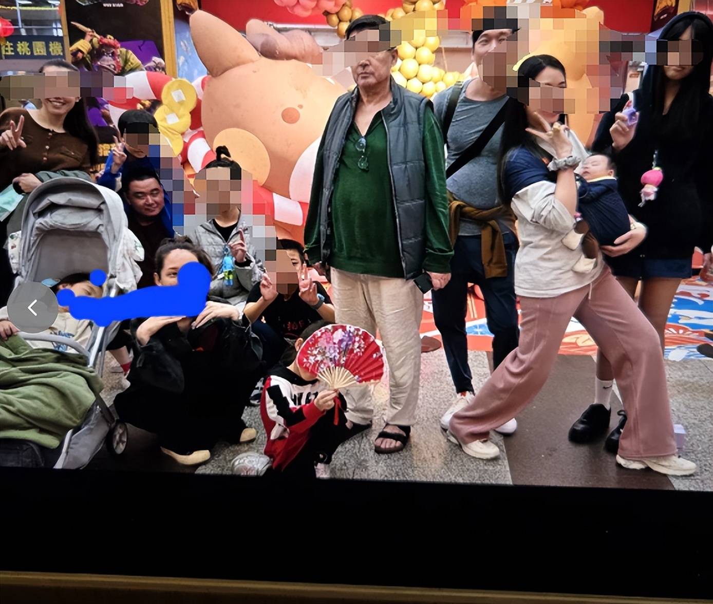 她的父亲跟她性子一样,晒团年照都没有精心修饰过,看背景十分随意。