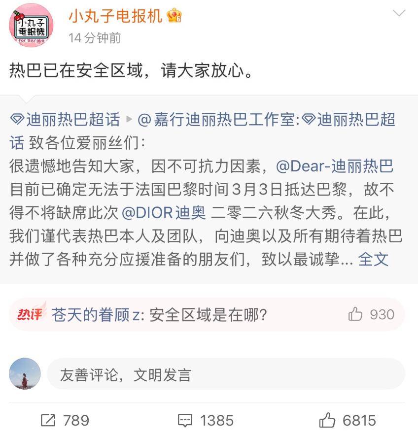 对接『迪丽热巴』工作的助理也发文报平安,称『迪丽热巴』已在安全区域,从这句话也能看出,有一段时间『迪丽热巴』身处的地方是比较危险的。