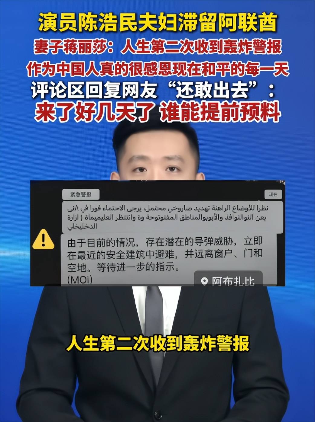 陈浩民一家抵达迪拜没几天,就收到了一条提醒短信,让他们赶紧去安全建筑里避难。