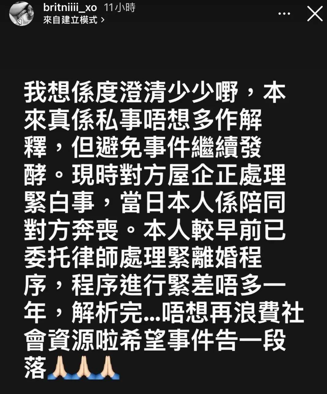 然而,陈薇在3月1日凌晨的限时动态,狠狠撕破了这层伪装。 她写道,本来家事不想多说,但为了避免误会继续发酵,必须澄清。 她透露,自己早在一年多前,就已经委托律师处理离婚程序。 那天被拍到,纯粹是因为周永恒家里有丧事,她陪同前往。 最后她疲惫地表示,不想再浪费社会资源,希望事情到此为止。