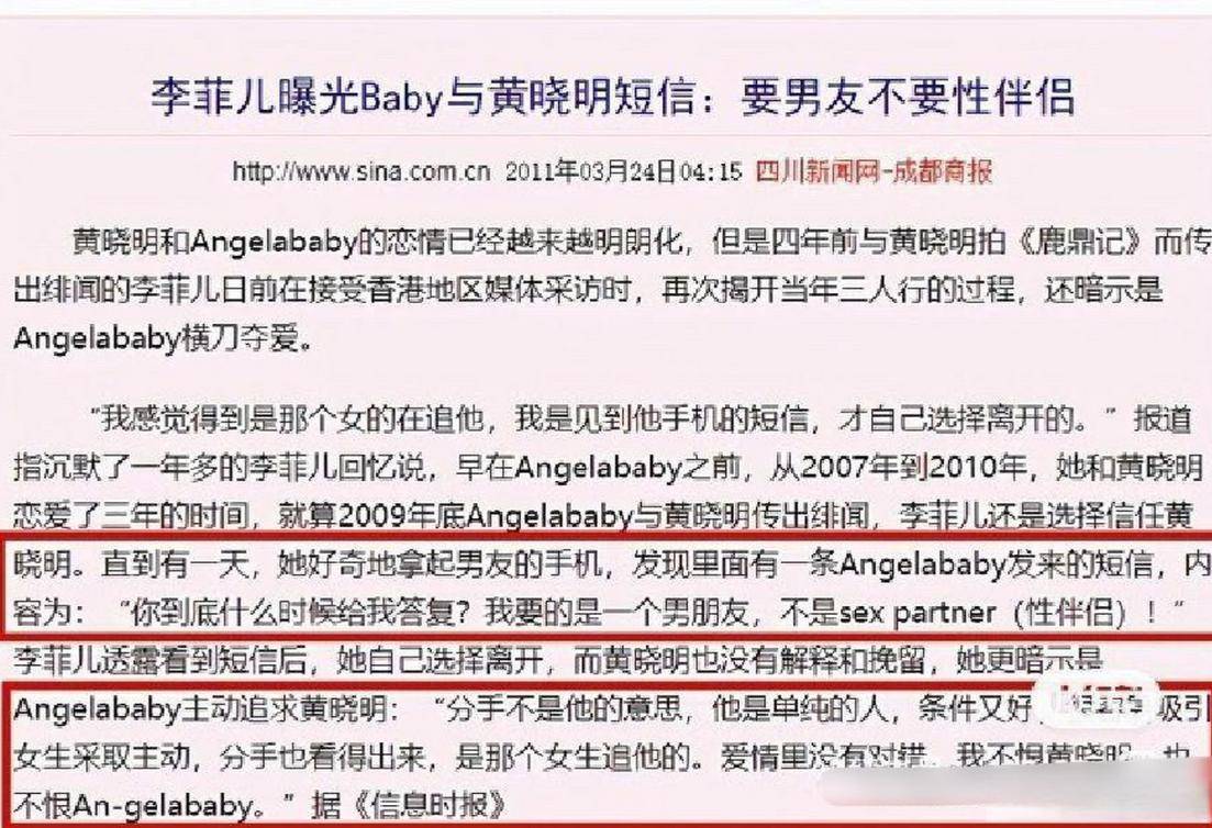 李菲儿和『黄晓明』分手后,曾直言她和『黄晓明』谈恋爱时,无意中看到了杨颖发给『黄晓明』的信息。