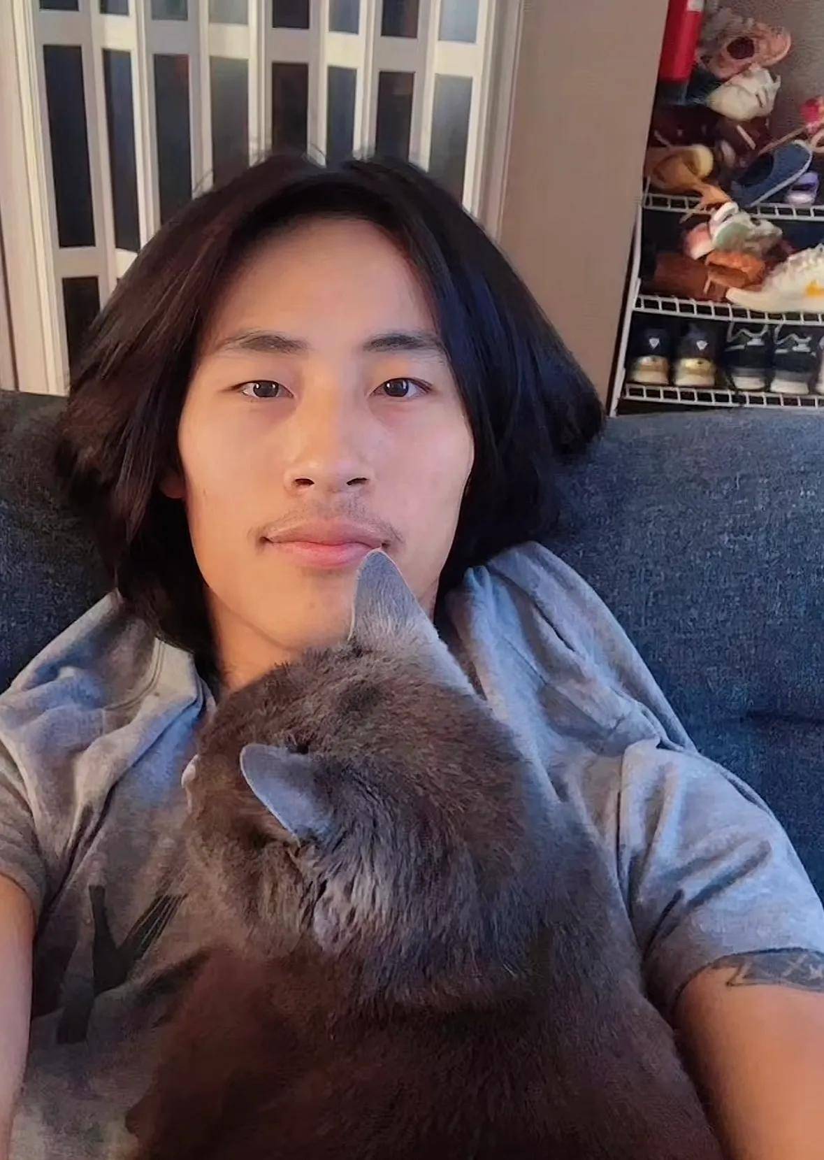 但是最近有网友扒出了他在加拿大时的生活照,看着并不像网传的那样过得穷困潦倒,他之前留着一头『长发』,长相帅气阳光还带点文字,养了一只猫,身上穿的也都是名牌,他还会弹吉他,是个多才多艺的男生。