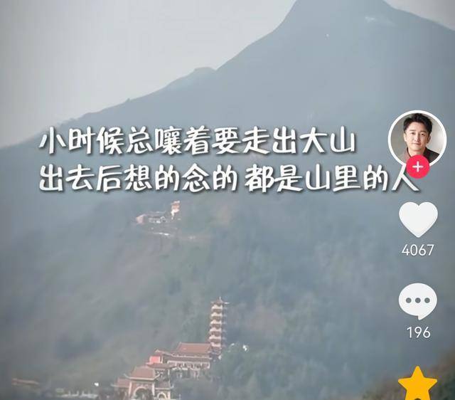 记得小时候上学时,老师常常告诫我们:要好好学习,才能走出大山。于是,小时候的我们便满怀憧憬,嚷着要离开大山,渴望去外面的世界闯一闯。那时的我们,总是觉得外面的世界充满了无限的美好,仿佛那里拥有所有的机会和希望。然而,当我们真的走出去,才会发现,心中思念的,竟然是那片熟悉的大山。故乡的山水、那里的空气、那些人,才是我们魂牵梦萦的地方。这份思乡之情,无论是普通人还是『明星』️,都是如此。