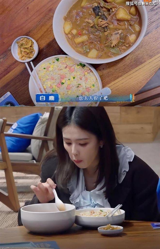 『王鹤棣』更是贴心,单独热了一碗鸡肉端给『白鹿』,『白鹿』也非常捧场,大口吃完了一大碗,完全不顾及女『明星』️的身材管理。
