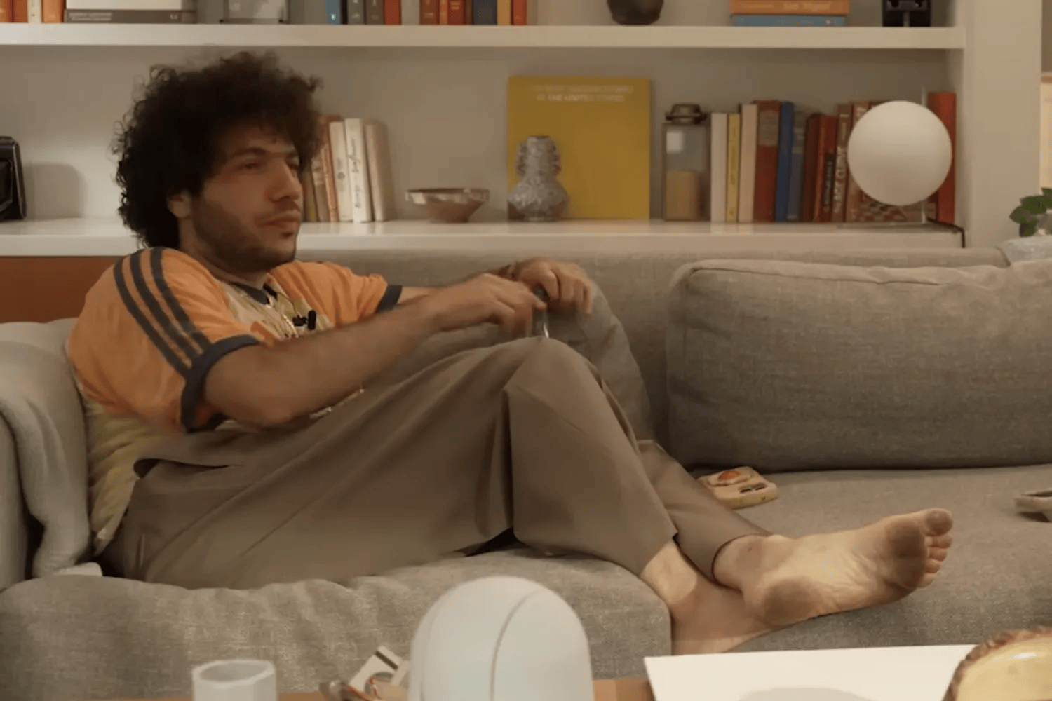 就在不久之前,本尼刚因为“脚看起来很脏”被网友疯狂吐槽。在他的播客节目《Friends Keep Secrets》里,他曾赤脚坐在沙发上聊天。镜头扫过脚底时,有人发现似乎有些灰尘。截图很快被转发,评论区里满是调侃:“至少洗个脚再录节目吧。”