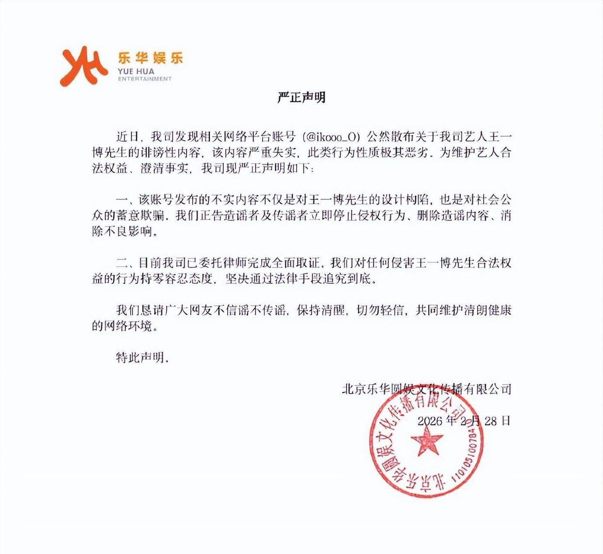 乐华娱乐在声明中直截了当地说,关于『王一博』的那些爆料完全不靠谱,属于造谣陷害的内容。