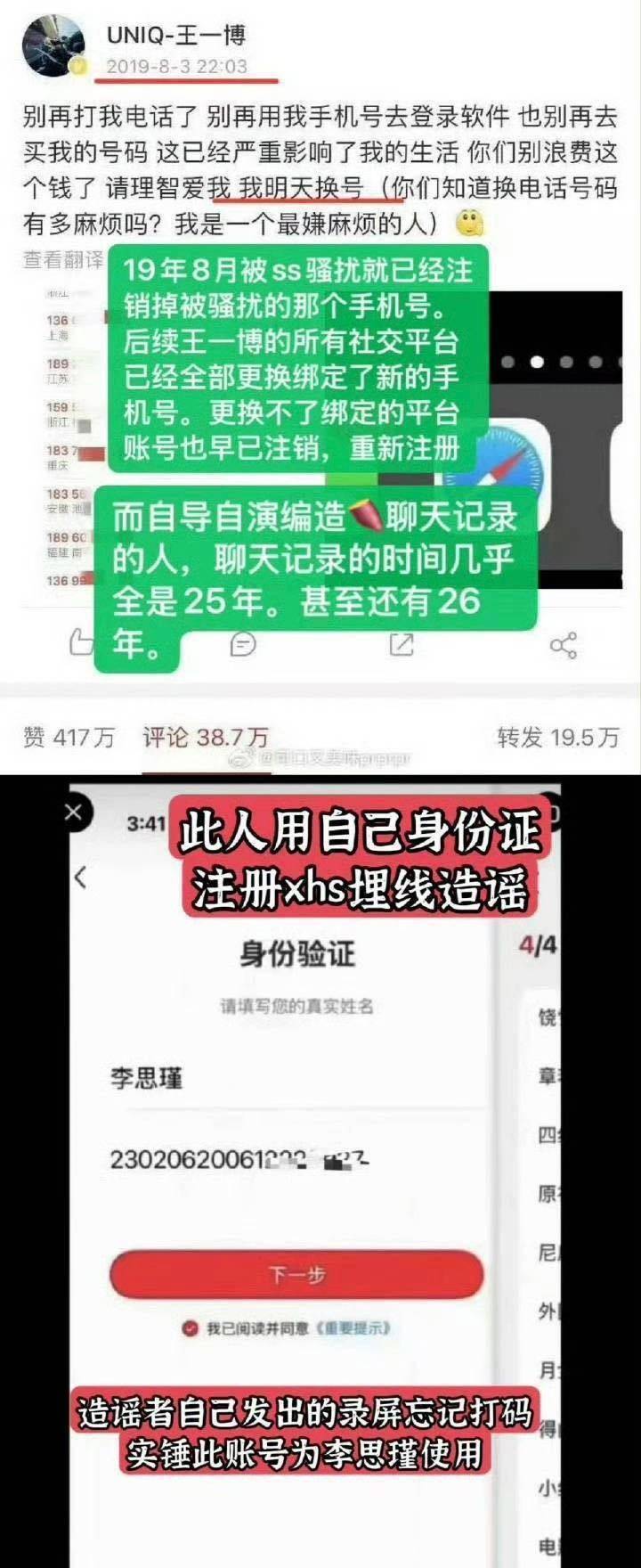 再加上2019年『王一博』发的一条被盗号的声明,也基本可以确定那些爆料都是假货,没有可信度。
