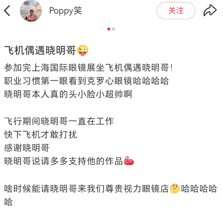 3月4日,一则『明星』️偶遇消息悄然走红『社交平台』,瞬间治愈无数网友——有网友发文透露,自己参加完上海国际眼镜👓展后,坐飞机时意外偶遇『黄晓明』,还晒出一组合影,画面里的细节,既让人惊喜,又让人忍不住为『黄晓明』的低调圈粉。