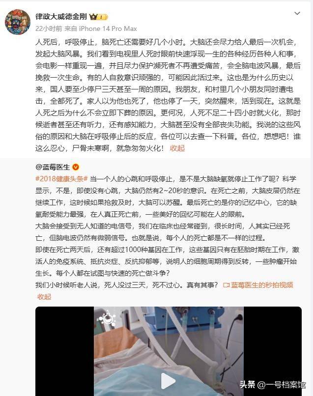 事实上,根据科学流程,死亡后尸体会在停尸房滞留一段时间,有些人甚至有可能从濒死状态复活。然而,这位律师的言论明显是有针对性的,最后提到匆匆火化的言辞似乎带有煽动性质。具体是怎么回事,只有S家人才清楚。