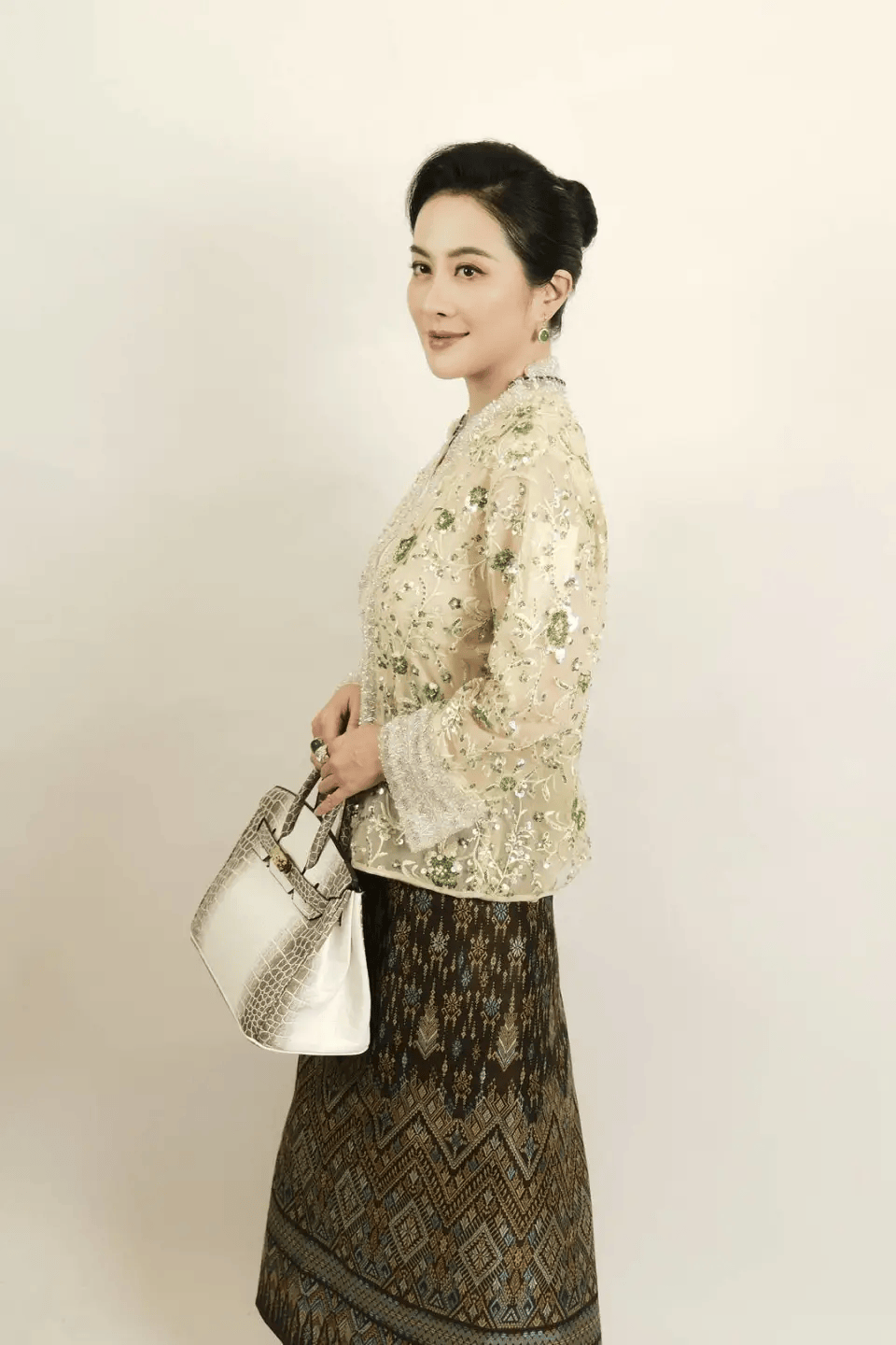 剧中她满身珠光宝气,祖母绿翡翠、沉甸甸的金珠,贵气逼人。当网友猜测这是否是“自带家当”进组时,叶璇笑着澄清:全是剧组道具!比起珠宝真伪,她更在意表演的真谛。一场得知儿子去世的哭戏,被观众誉为“电影级表演”,情绪层次丰富,微表情精准,被赞对短剧实现了“降维打击”。