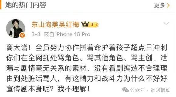 捕娱姐先表个态:演员用心拍戏,就该被尊重;观众合理质疑,就该被回应。剧方的失误,不该让演员背锅,更不该用内涵言论转移焦点,这才是内娱该有的样子!