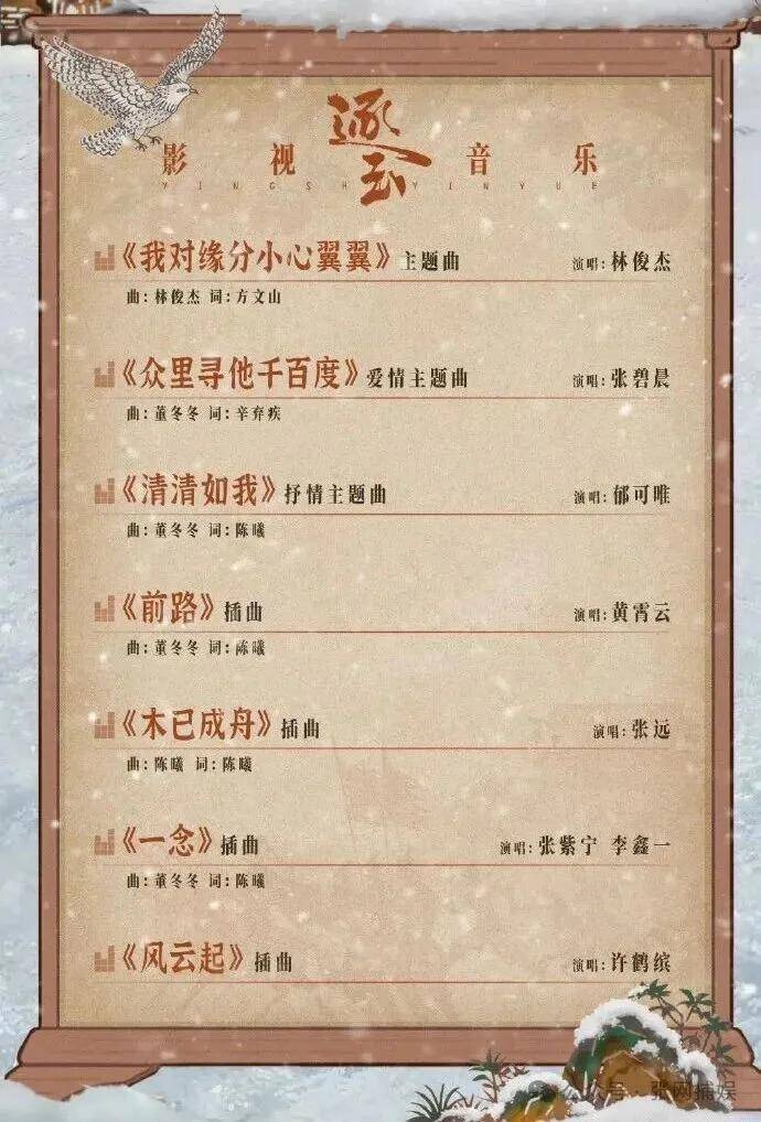 先看OST阵容,说是“年度王炸”都不为过——『林俊杰』作曲并演唱,方文山作词,这对乐坛顶流组合时隔七年再度合体,为《逐玉》量身打造主题曲《我对缘分小心翼翼》。