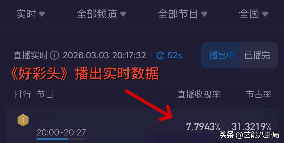 好彩头》引爆收视,瞬间飙升至7.79%!第一个节目就让观众眼前一亮。『宋轶』、希林娜依·高、姚晓棠、『欧阳娜娜』四位美女合唱《