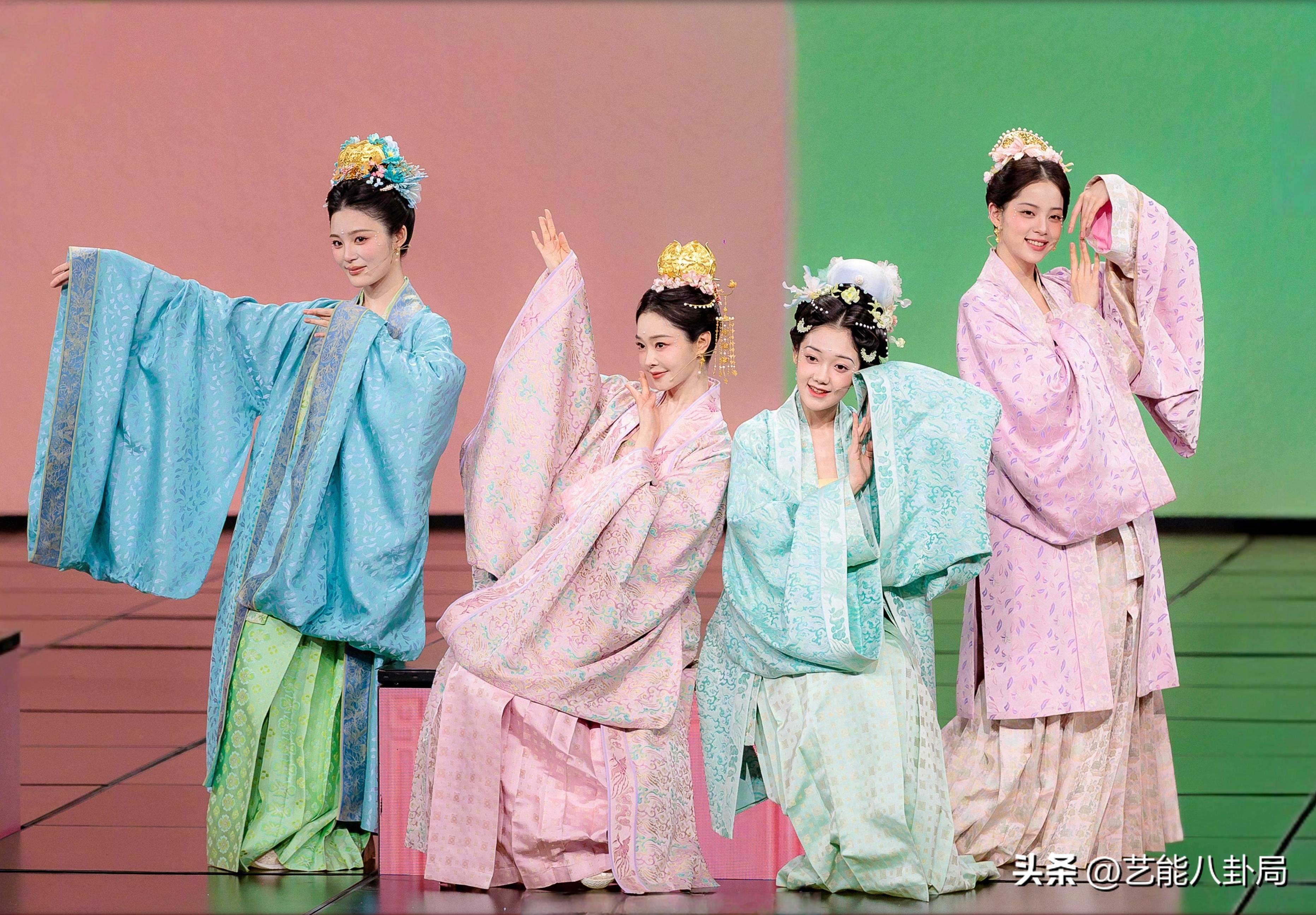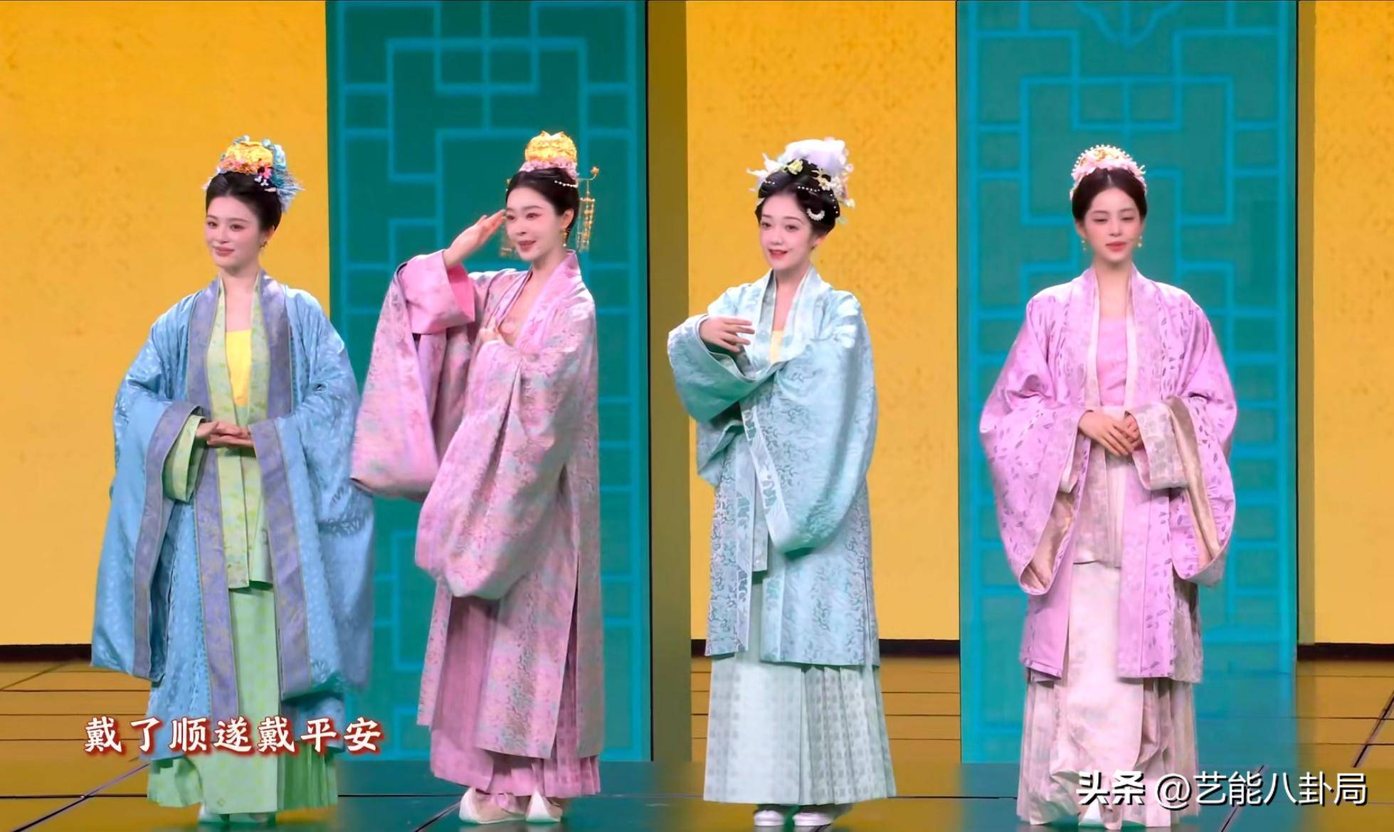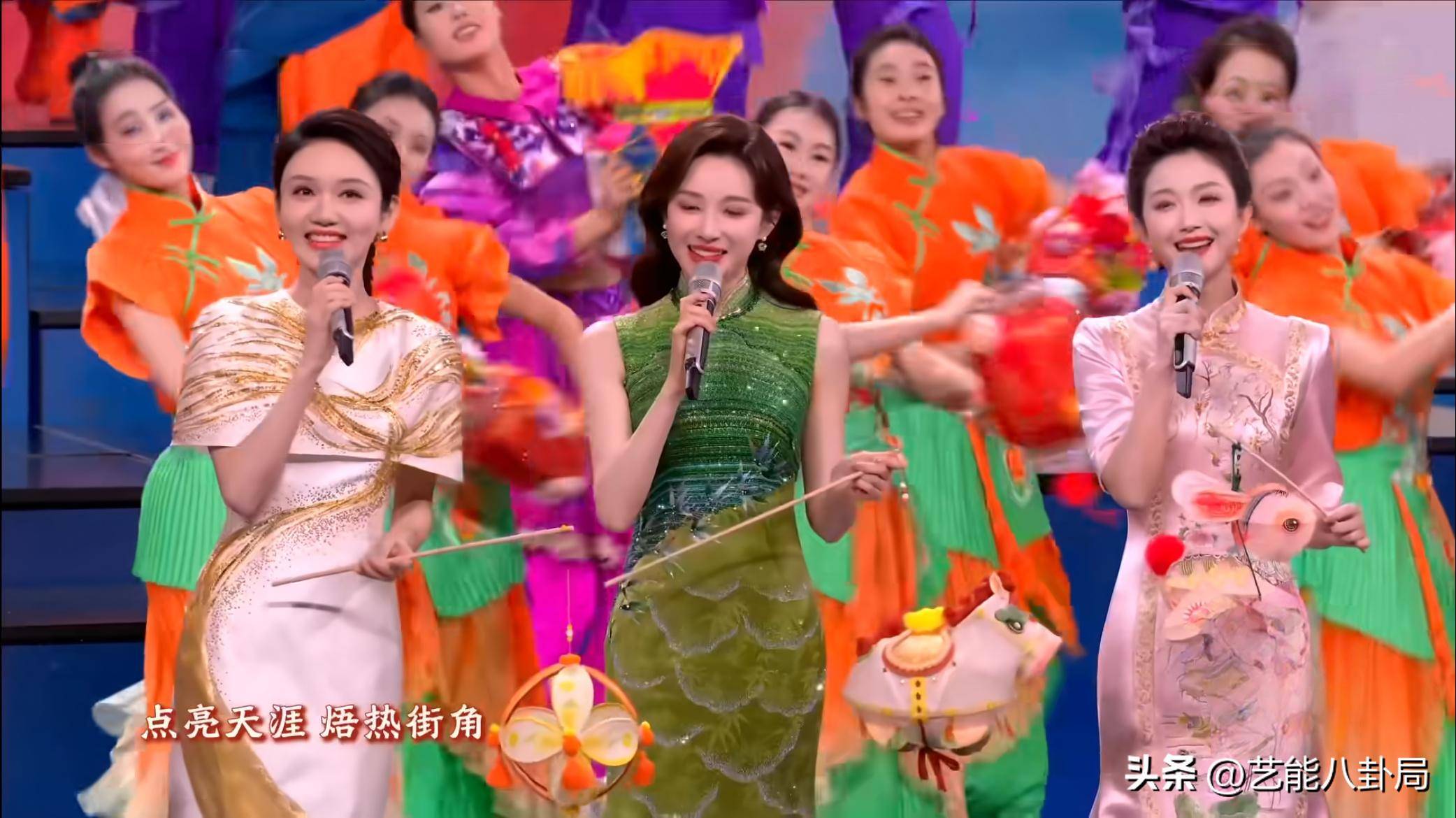 好彩头》,堪称本届晚会的颜值天花板。她们身着宋代华服,面贴花钿,发间簪花,仿佛是元宵节出门赏灯的古代美人。她们摒弃了浓妆艳抹,复刻了宋代仕女的清、雅、柔、贵,展现了含蓄的东方美感。每一个细节都精致得令人陶醉,舞美更是独具匠心,水墨风背景与柔和的灯光交相辉映,不仅藏着宋代的静雅与深远,还完美契合了元宵晚会的团圆与美满,暗合了但愿人长久的美好期许。养眼又动听,这样的神仙舞台收视率直接飙升至7.79%,真的是为晚会带来了好彩头!