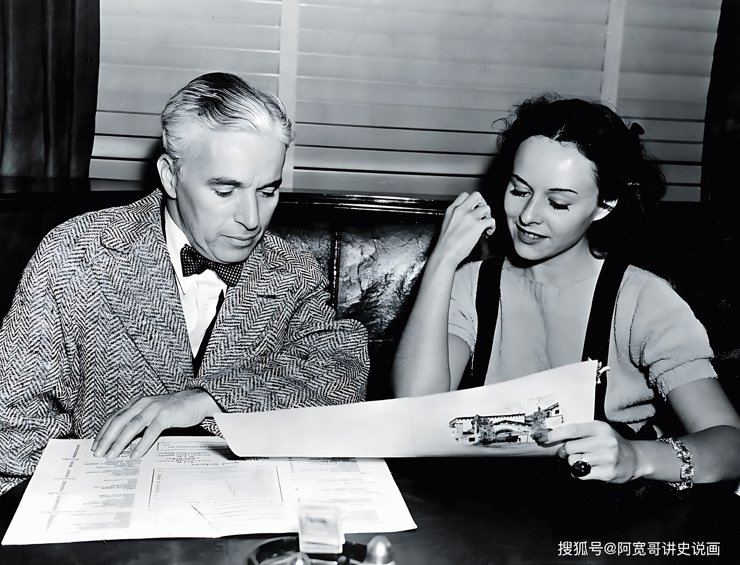 20世纪50年代,查理·卓别林与宝莲·高黛在咖啡馆