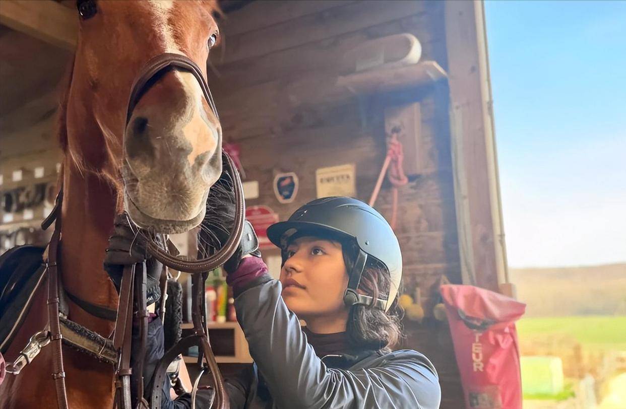 霓娜则从7岁开始系统学习马术,至今已坚持六年。 安娜经常在『社交平台』分享女儿骑马的照片和视频。 在2026年2月的一次马术法中杯考级大赛中,霓娜获得了亚军。 这项运动需要极大的耐心、专注和投入,霓娜的坚持也体现了父母对她个人兴趣的支持。