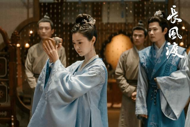 制作层面,《长风渡》尽显匠心,古风质感拉满,细节考据严谨,堪称“视觉盛宴”。剧组定制的服装高达上千套,造型指导根据人物的成长与场景变化,搭配不同风格的服饰,精准传递角色的性格与处境:顾九思前期身为纨绔时,服饰多以鲜艳的红、蓝为主,不束发,尽显潇洒不羁;后期成长后,服饰转向深沉内敛,贴合角色的成熟与担当。柳玉茹的服饰则素雅精致,从闺阁襦裙到经商时的干练装束,每一套都贴合人物身份,尽显江南女子的温婉与灵动。
