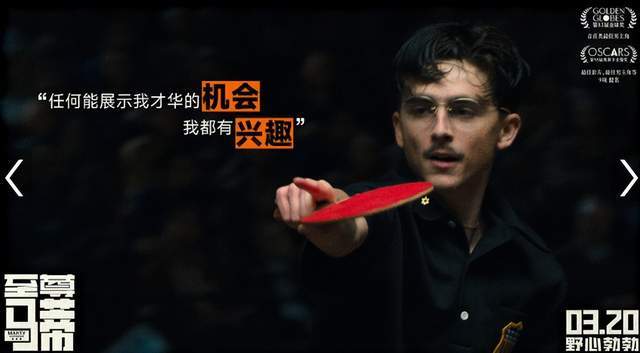同一天,还有一部风格截然相反、但同样备受瞩目的传记片《至尊马蒂》上映。该片由“甜茶”提莫西·查拉梅主演,讲述了美国乒乓球运动员马蒂·雷斯曼为了世界冠军的梦想孤注一掷的故事。