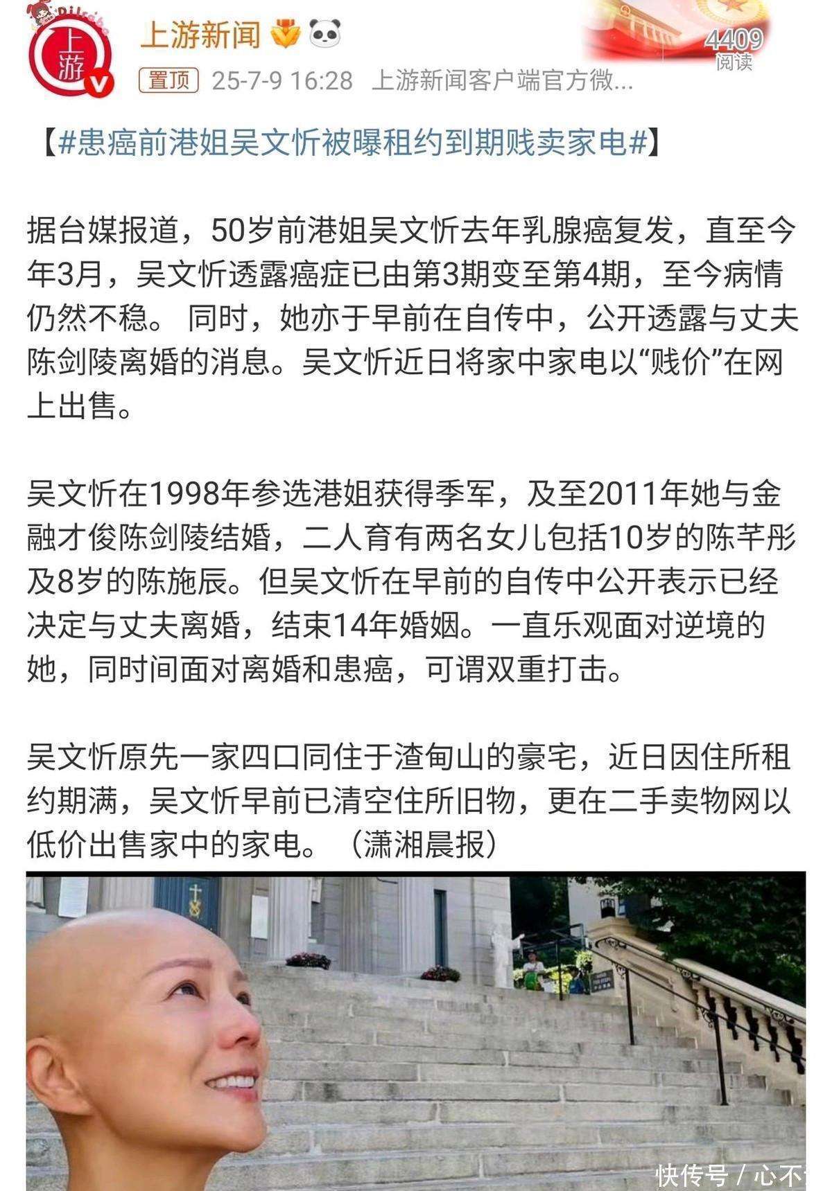 婚姻的崩塌,有时比癌细胞的扩散更无声无息,且更彻底。当乳腺癌四期的诊断如同重锤砸下,人生瞬间变得暗淡、灰白,充满了绝望。吴文忻或许曾在那一刻,本能地向身边最熟悉的人寻求安慰与支撑。然而,现实却给出了更加沉重的回击——她的丈夫,那个曾在神坛上发誓无论生死,永不分离的男人,在她最需要依靠的时候,选择了背离。