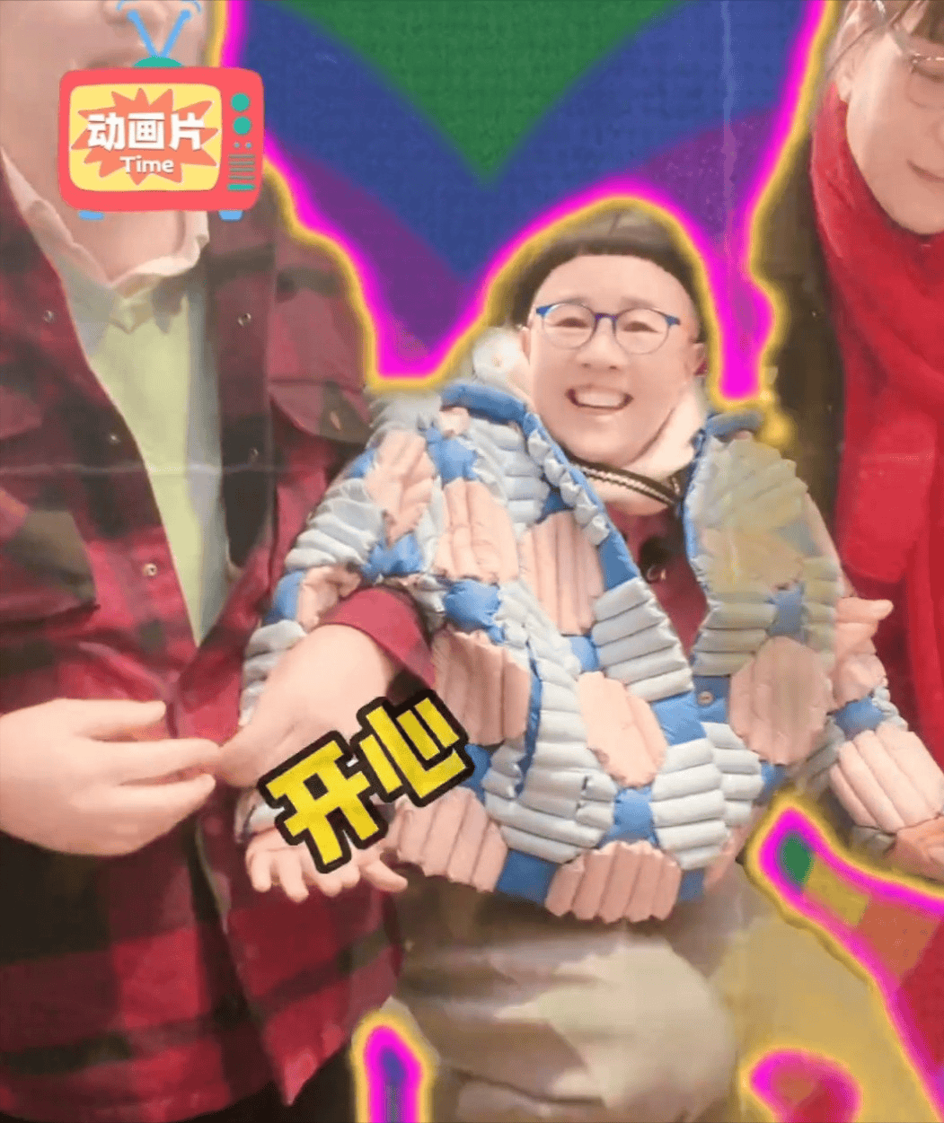 镜头一开,金龟子抬头看了一眼左边,又扭头看了一眼右边,笑得像是要把彩色眼镜👓都笑歪。