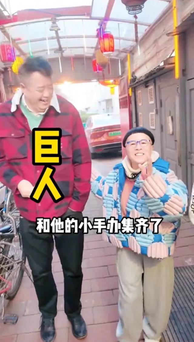 你说这是不是“现实版反差喜剧”?但最绝的不是身高差,是那种熟人局的松弛感。没有端着,没有摆拍,只有互相损两句、互相扶一下,像老北京冬天那口热气腾腾的铜锅——一掀盖就冒白雾,暖得很直接。