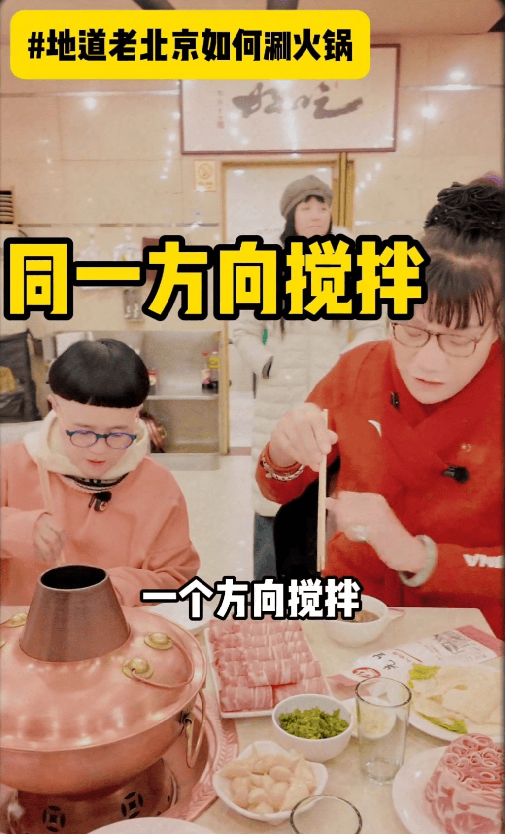 地点选得也很“北京”。他们去的是一家老牌铜锅涮肉店,门口热气、屋里人声、墙上挂着名人照片,像个老江湖的“打卡册”。