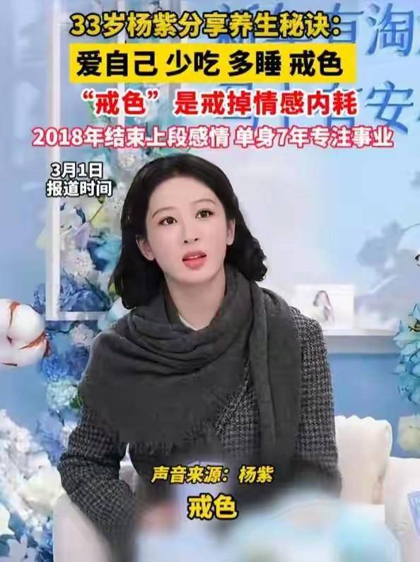 2月28日,那段直播片段一经播出,『杨紫』随口一句少吃,多睡,戒色,便瞬间掀起评论区的波澜。尤其是戒色二字,引发了网友们的激烈讨论。 有人直接理解为不谈恋爱,也有人觉得她是在提醒自己别让感情消耗掉生活的精力。媒体随后转述时,更倾向将其解读为一种生活原则:不要因为寂寞而仓促开始一段感情,以免遇上不合适的人而耗尽自己。