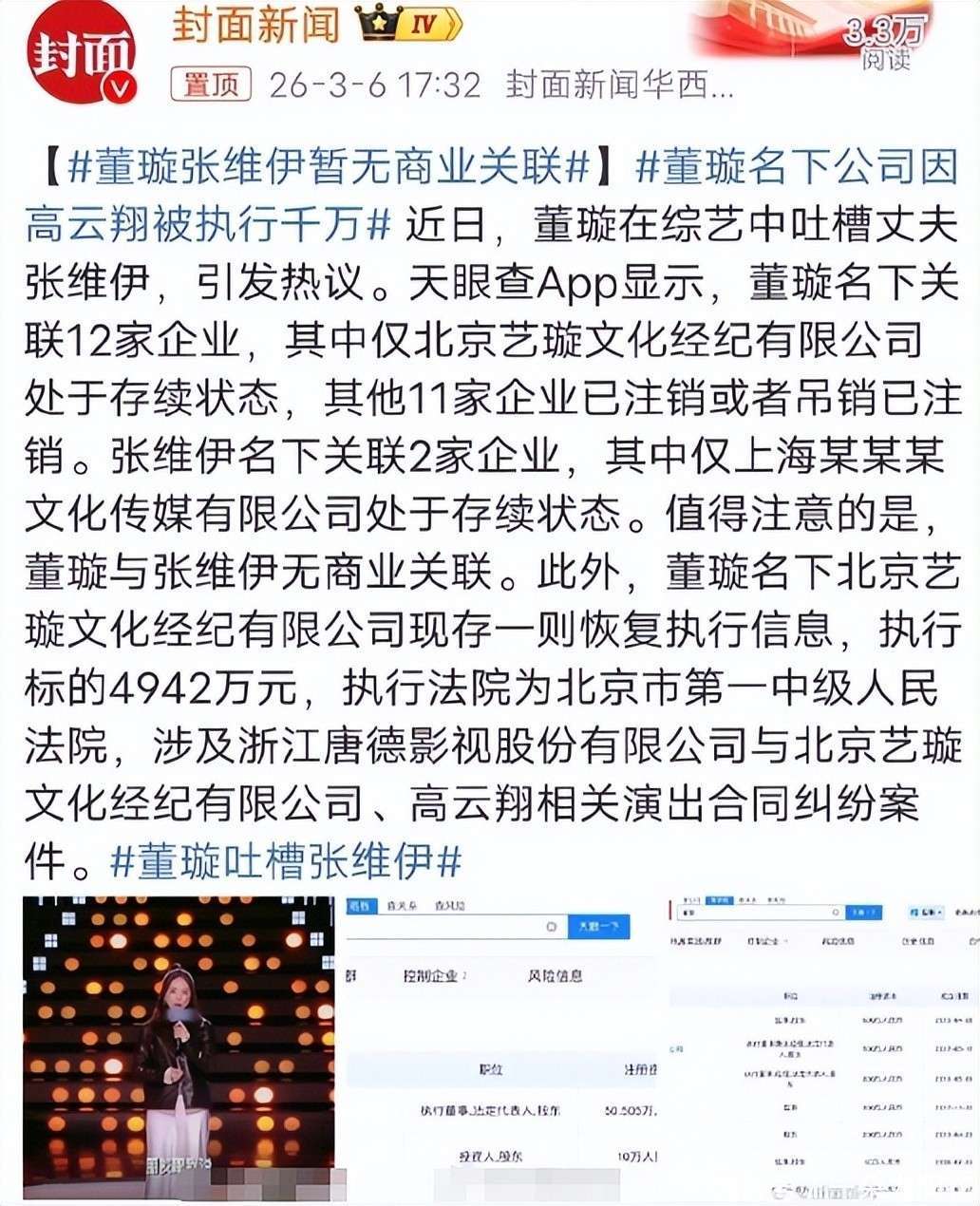 『董璇』自从高调二婚以来,身上的争议便没有停过。最近,一张法院的恢复执行公告再次将她推上了风口浪尖,成为了舆论的焦点。
