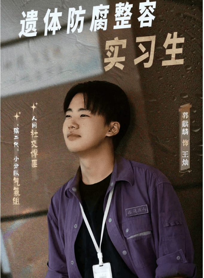 郭麒麟饰演的男主王灿,是剧集最大的看点,也是他演艺生涯的一次全新突破。此前郭麒麟凭借《庆余年》《赘婿》等剧,塑造的多是机灵讨喜、嘴贫心软的喜剧角色,自带轻松诙谐的荧幕标签。而此次他彻底转型,饰演创业失败返乡的北漂青年,被父母安排进入家乡殡仪馆装殓班,从最初的抵触逃避、手足无措,到慢慢理解这份工作的意义,最终坚守岗位成为合格的殡葬从业者。
