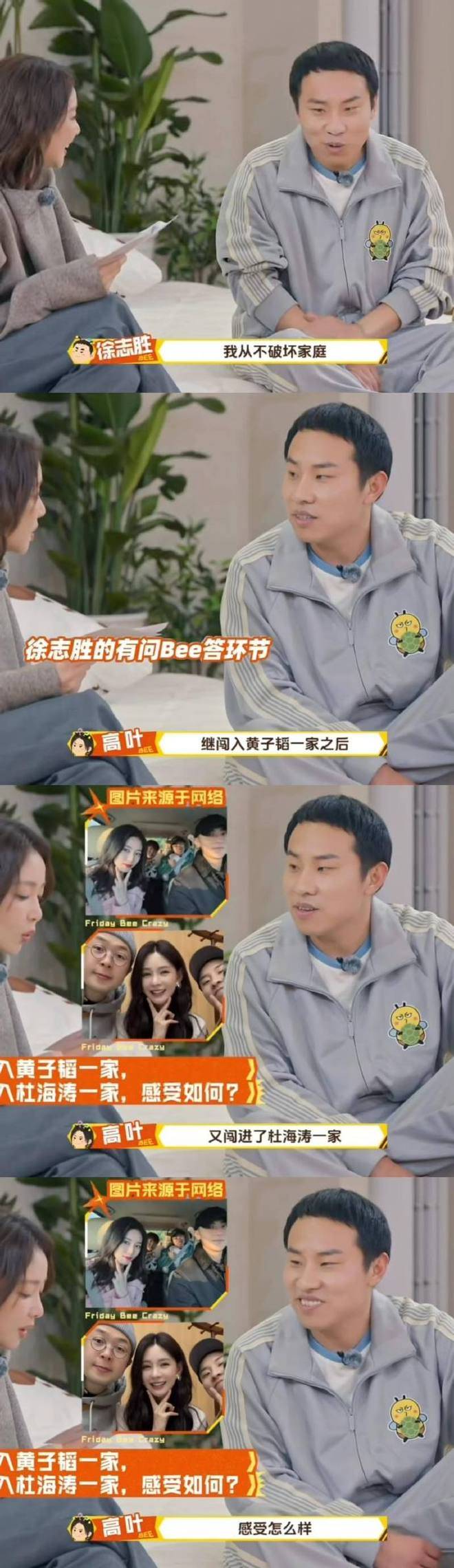虽然这只是一次轻松的玩笑话,但徐志胜接下来的调侃却令人捧腹。他幽默地表示:没有我,他们俩可能组不成家庭。听起来似乎有些夸张,但若结合前文,那句话反而精准地解释了他在这段关系中的特殊位置——并非事事插手的搅局者,而是扮演着一个粘合剂的角色。被问及如何与朋友情侣相处时,徐志胜又抛出了一个金句:我从不破坏家庭,只是融入家庭。他幽默地自诩为家庭编外成员。这一句话,既展现了他与『黄子韬』、徐艺洋之间超越普通朋友的亲密与信任,也巧妙划清了与他们私人世界的界限,避免了直接介入他人矛盾的尴尬。