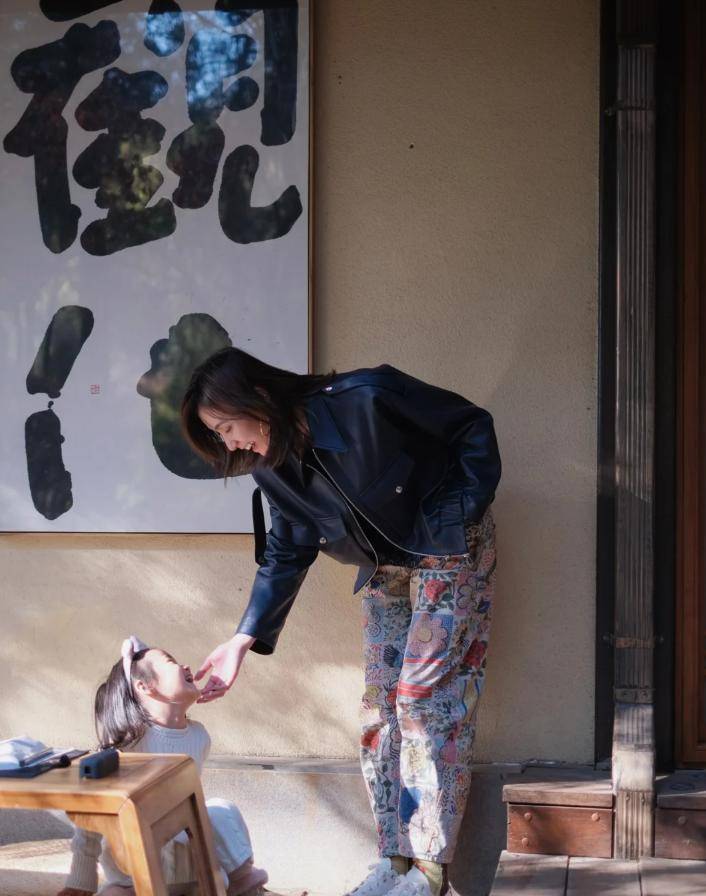 她换黑色皮夹克,弯腰贴近女儿夏夏,小手指轻轻碰到孩子的脸,夏夏笑得眼睛眯成一条线。镜头里没有男人出镜,空气里却像写着一个名字。
