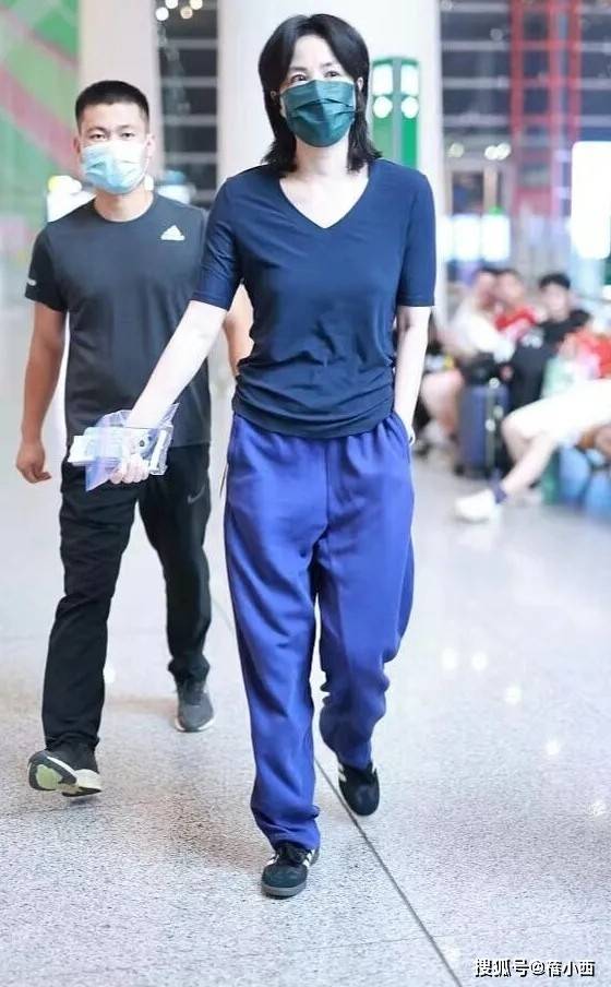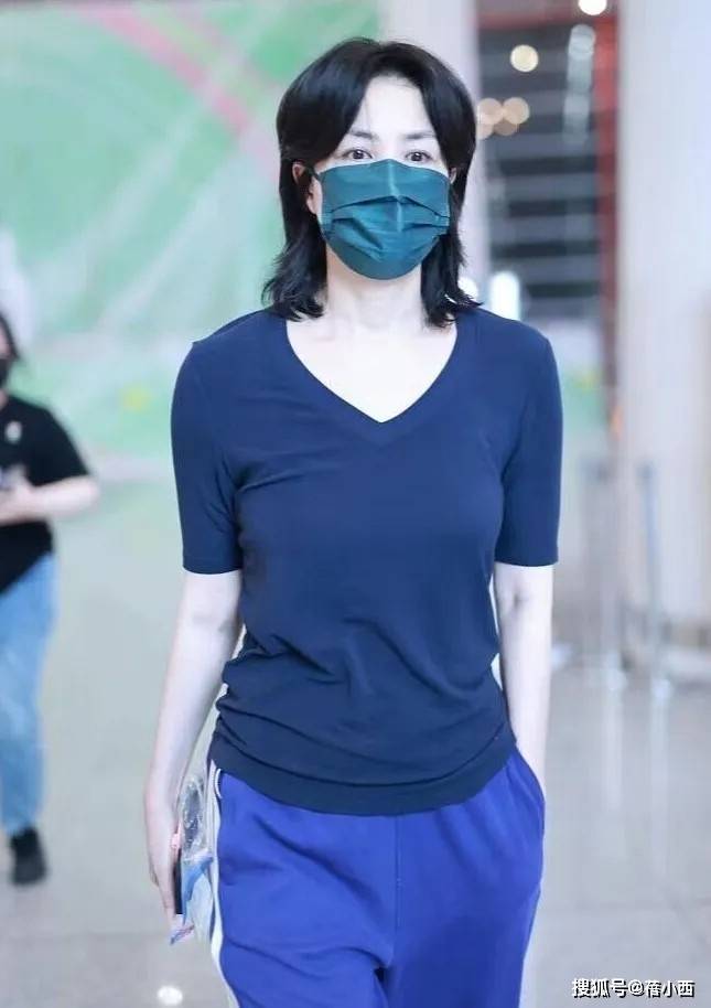 这一身藏青色配宝蓝色的撞色造型,则展现了『王菲』对色彩搭配的超强掌控力,简约中透着个性。上半身是一件藏青色V领短袖T恤👕,修身的版型贴合身形,勾勒出纤细的手臂与腰腹线条,完全看不出岁月的痕迹,身材管理的太好了。V领设计是她这一件t恤的亮点,不仅拉长了颈部线条,增添了几分随性小性感,还能在视觉上起到显瘦效果,让整个人看起来更舒展。