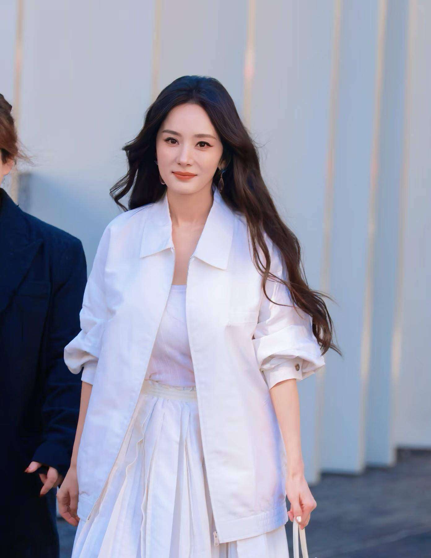 再来看『杨幂』,这次的造型的确很用心。白色夹克配上百褶裙,连鞋尖上那个蝴蝶结🎀都做得精致得不行,走的完全是时尚标杆路线。毕竟,刚凭《