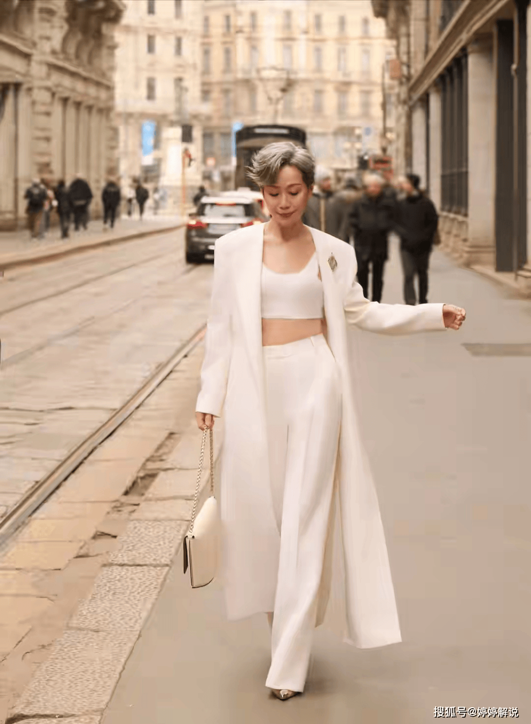 有人说,时尚的最高境界是“人穿衣,而非衣穿人”。叶童在米兰街头的这套全白造型,恰恰印证了这一点。她没有追逐潮流,而是用最简洁的配色、最利落的剪裁,穿出了属于自己的味道。
