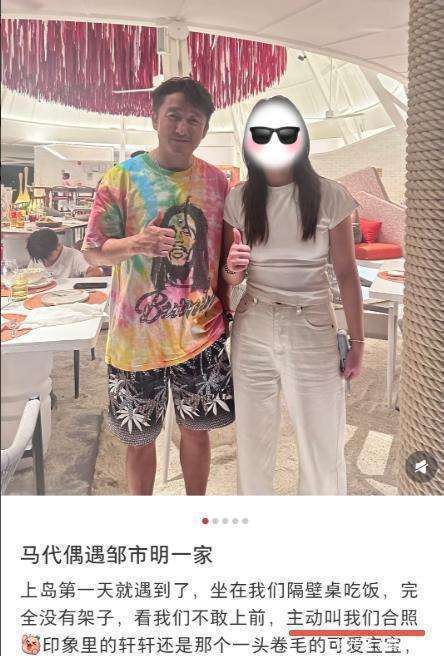 这次的马尔代夫之行,邹市明一家完全把心态好四个字演绎得淋漓尽致。2月28日,偶遇的照片中,44岁的拳王穿着一件花短袖,脸上红扑扑的,显然喝了几杯,那种松弛感真是和他曾经创业大败的经历完全不符。最让人惊掉下巴的,是他的大儿子轩轩。记得当年《爸爸去哪儿》里那个肉乎乎的小团子,现在竟然长到了1米78!一头银发,搭配黑色潮服,虽然有人吐槽看起来有点土,但这个14岁的少年散发出的酷劲儿简直挡都挡不住,和小时候完全判若两人。