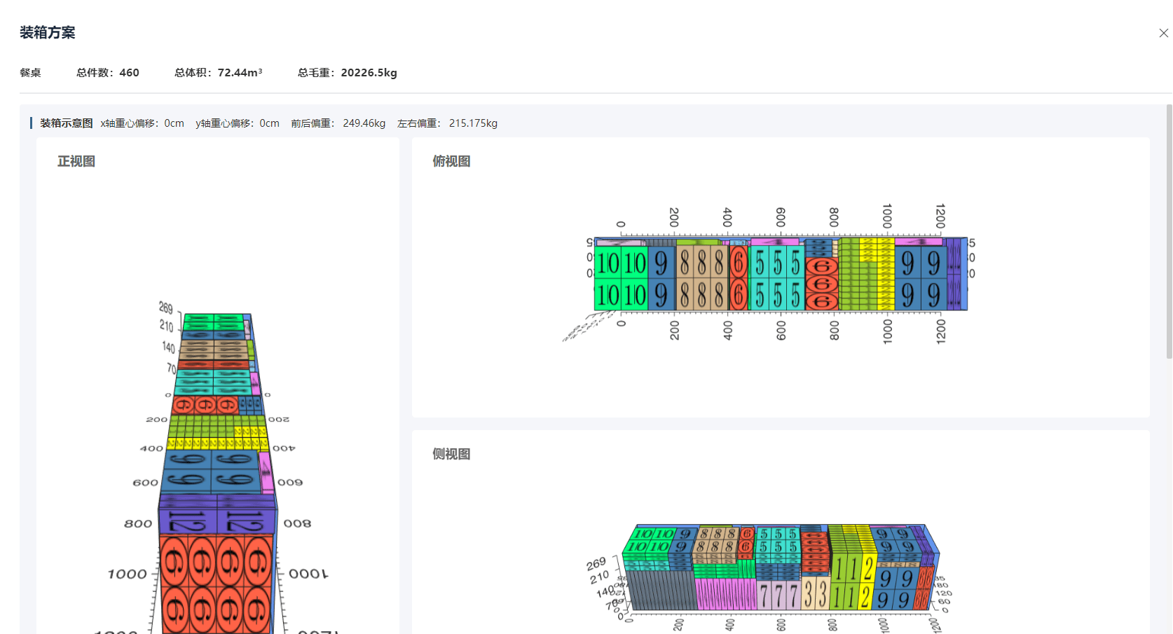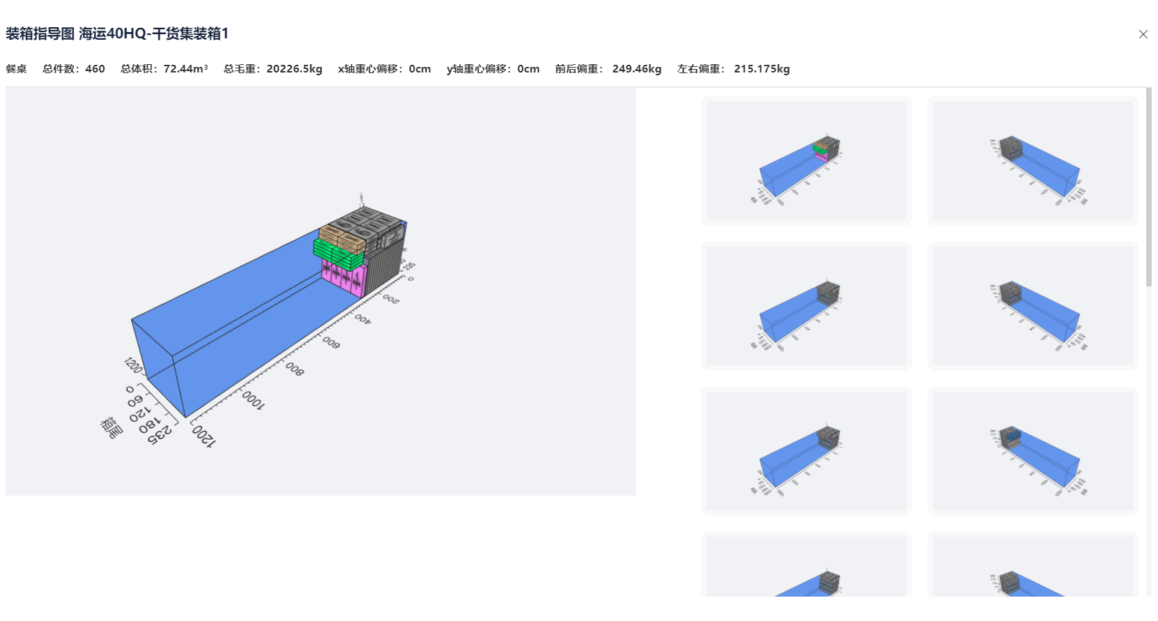 不同订单数量不同,每次结构都要重算。人工排柜在这种复杂结构下,很难一次到位。