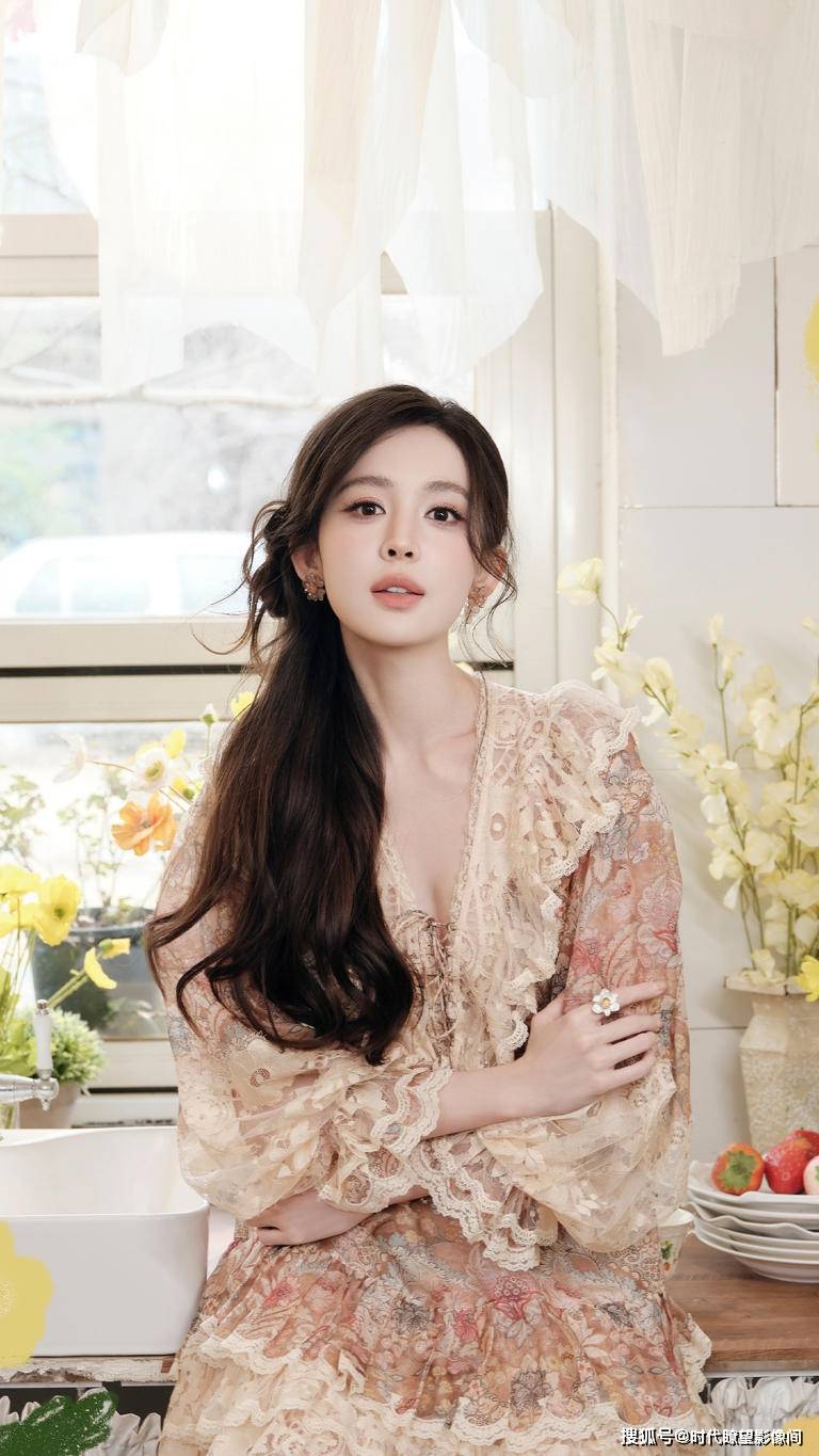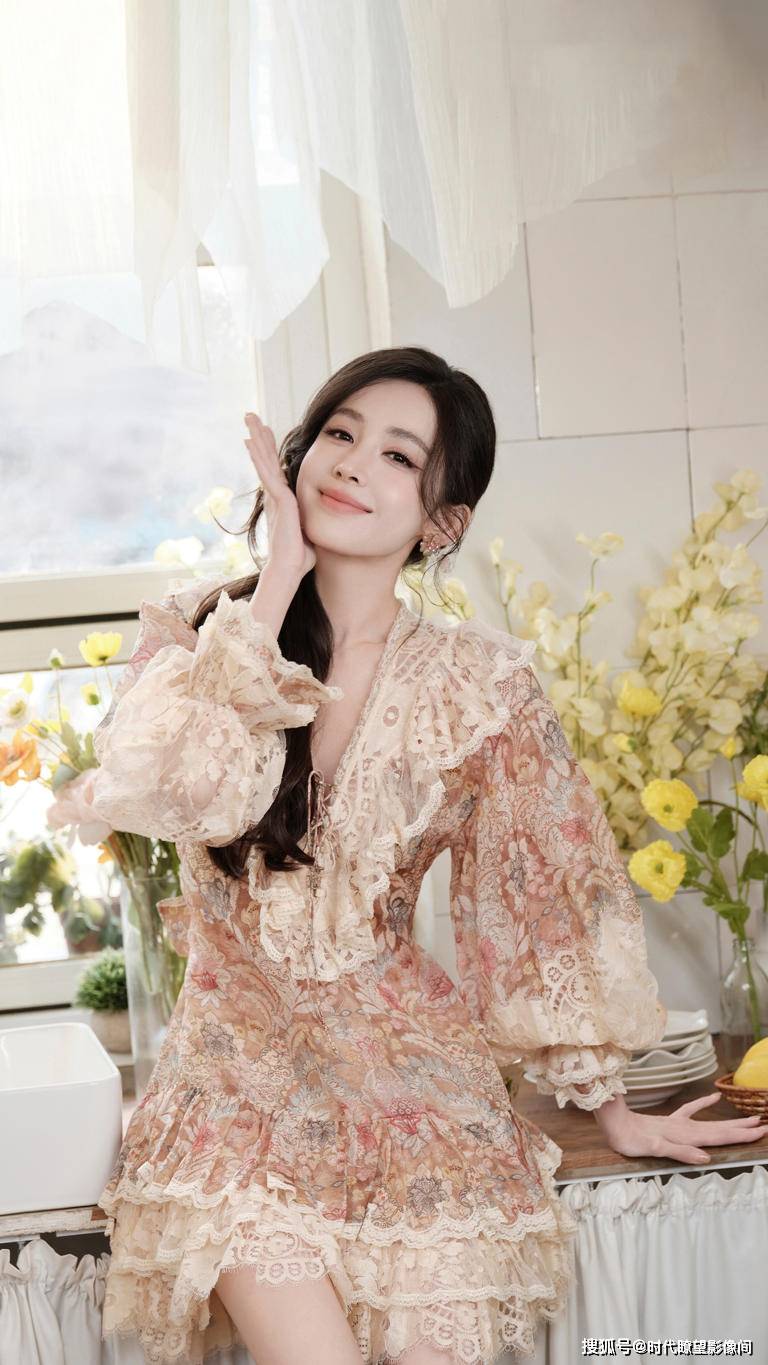 家人们谁懂啊!『古力娜扎』这组花房写真直接把我砸进春天的温柔里了,看完直接想把 KPI 甩一边去晒太阳!她往花房里一坐,哪里是拍照,分明是把整个春天都穿在了身上 —— 米杏色蕾丝碎花裙一上身,V 领刚好勾勒出锁骨线条,层叠的裙摆像被微风轻轻托着,连空气都软乎乎的,这不就是从莫奈油画里溜出来的春日精灵吗?