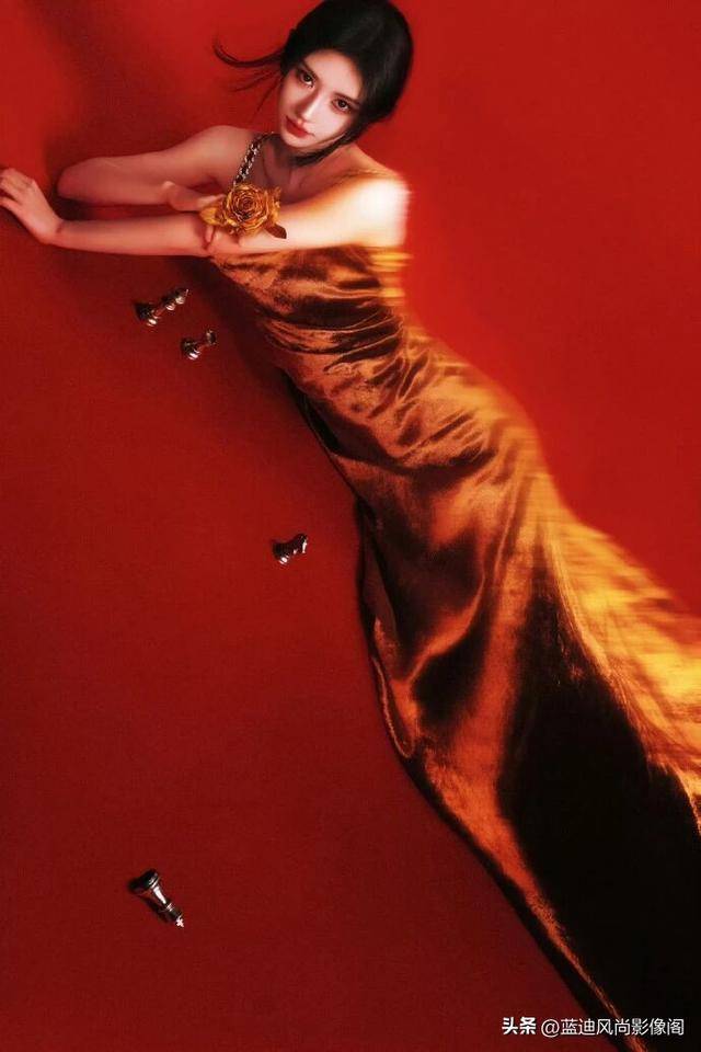 内娱甜妹的风格转型,永远是最容易翻车的重灾区。要么为了凹御姐人设,彻底丢掉自己的特色,硬穿不贴合的衣服、化违和的浓妆,全程像在演别人;要么困在甜妹舒适区里不敢出来,拍再多造型也只有千篇一律的软萌感,毫无记忆点。但『鞠婧祎』这组正月十五元宵大片,直接跳出了这个怪圈。一袭鎏金渐变丝绒礼裙上身,她没有彻底丢掉自己刻在骨子里的甜媚,反而把这份柔媚当成了底色,叠加出了优雅曼妙又自带压迫感的女王气场,也彻底打破了大众对她 “只会甜妹风” 的刻板印象。