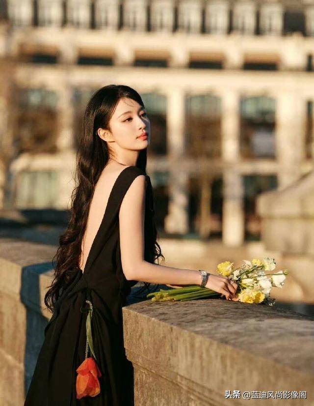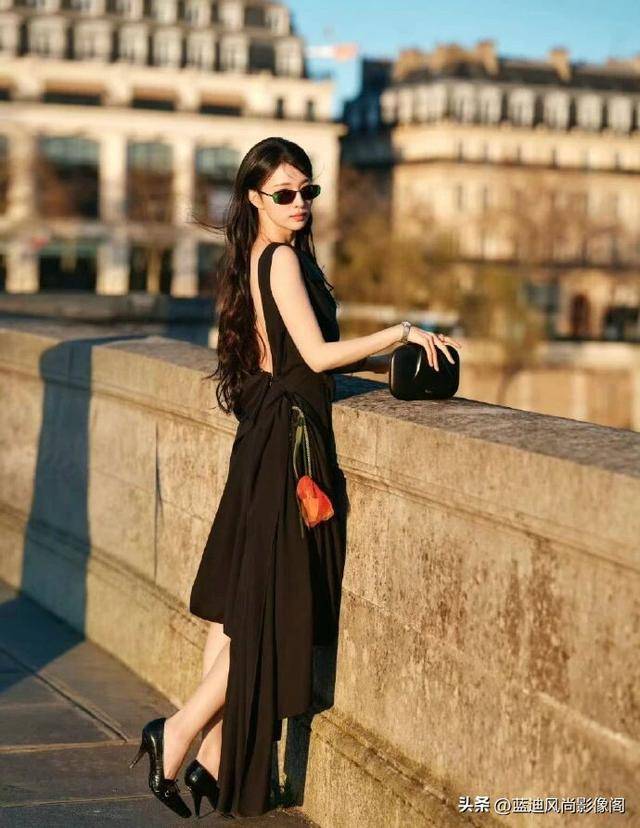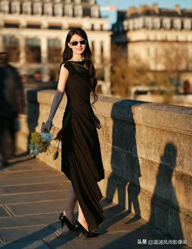 更难得的是,她彻底打破了 “高定礼服只能端着穿” 的刻板印象。镜头里的她,没有在摄影棚里硬摆凹造型,而是漫步在巴黎的街头,手里捧着一束明媚的花束,迎着落日的暖光自在行走。黑超墨镜🕶️一戴,添了几分冷艳疏离;摘下墨镜🕶️,眉眼间又是舒展的明艳与温柔。