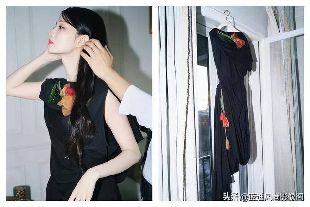 没有漫长的铺垫,没有含糊的过渡 title,一步到位的合作背后,是她用一身黑色花卉刺绣长裙👗,把 『Dior』女郎的优雅格调,诠释得恰到好处。