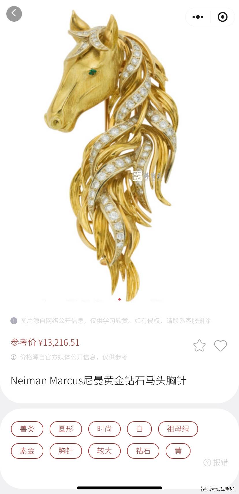 最后,答案揭晓,这枚18k马头黄金胸针,30多克,2009年拍卖时仅需1912美元💵,换算成人民币才1万多!