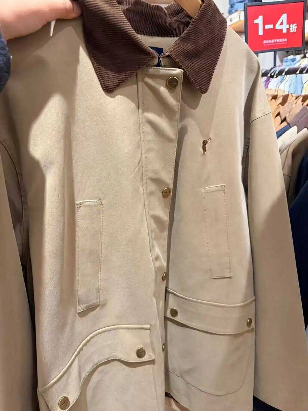 材质上,POLOWALK的外套🧥里聚酯纤维占大头,但也有一些和拉夫劳伦做到了大体对齐,例如店内的两款衬衫,一款成分显示“100%棉”,另一款则是59.1%的亚麻和40.9%的棉。“纯棉”对高年龄层客群的吸引力在商场店里充分体现:一位估摸着50来岁的北京大姐在店里拿起一件衬衫,向女伴发出惊叹,“材质纯棉,你别说嘿这个颜色真好看。”
