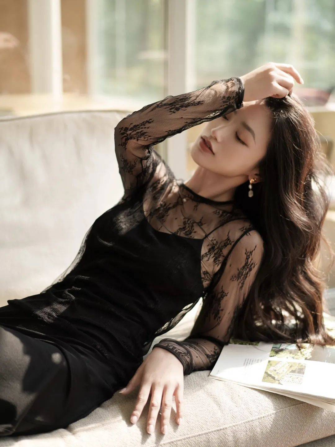 整个下午都很安静,只有远处的挂钟在滴答滴答地响。不过就算她一动不动地躺在那里,也让人觉得她是这个空间的主人。就连窗外的麻雀飞过去,都好像要轻手轻脚的,生怕打扰到她。这条吊带长裙👗就像给她施了魔法一样,既舒服又让她看起来特别有气质。