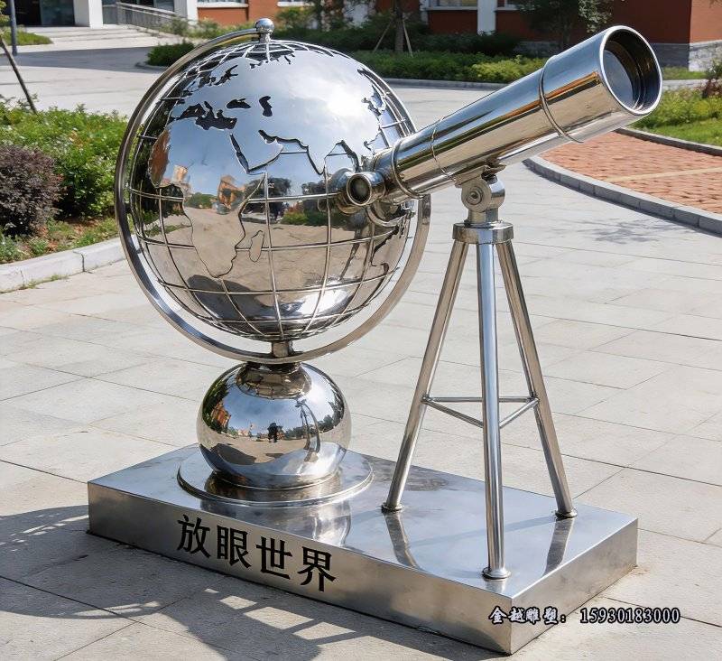 不锈钢放眼世界雕塑在校园环境中的普及已成为一种趋势,这种兼具现代美学与实用性的艺术载体,正以几何线条的张力与金属光泽的科技感重塑着教育空间的气质。不同于传统石雕的厚重感,镜面抛光的材质能随着晨昏晴雨折射出变幻的光影,既像莘莘学子跃动的思维火花❇️,又暗喻知识探索中不断被刷新的认知边界。