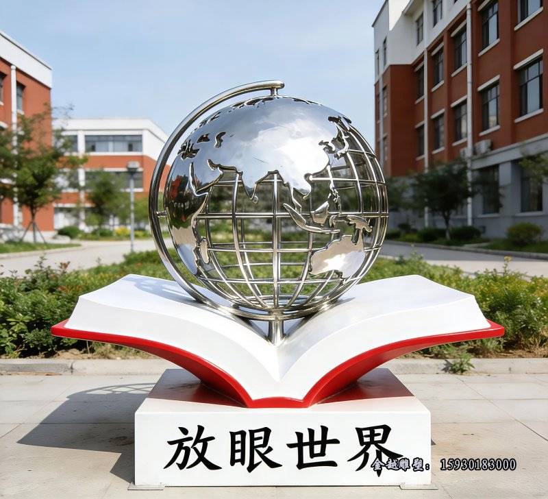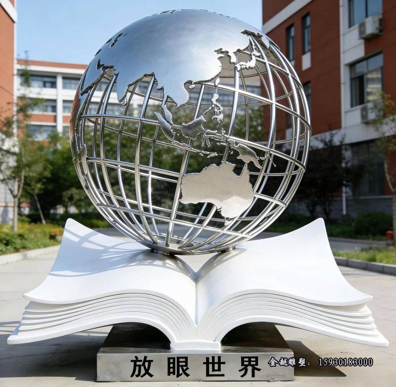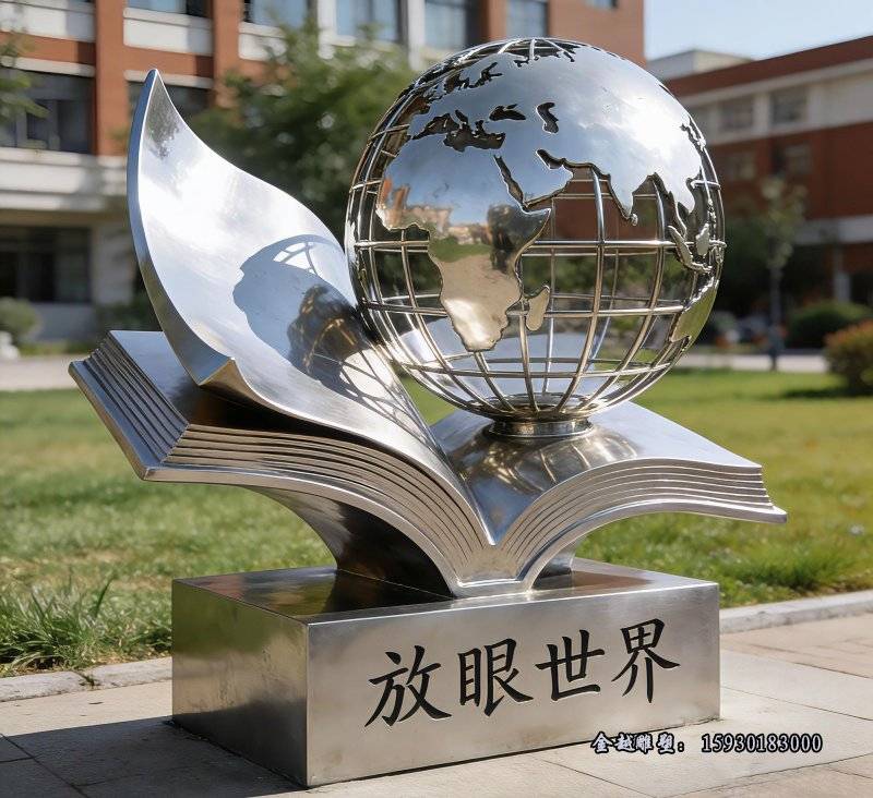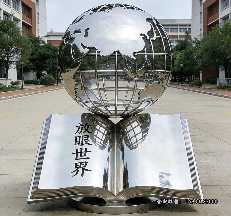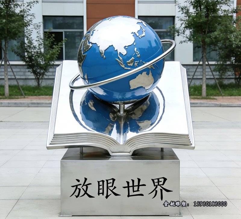 校园摆放不锈钢放眼世界雕塑造型以后会越来越多了,寓意符合学校的文化理念(学校用不锈钢水槽图片)