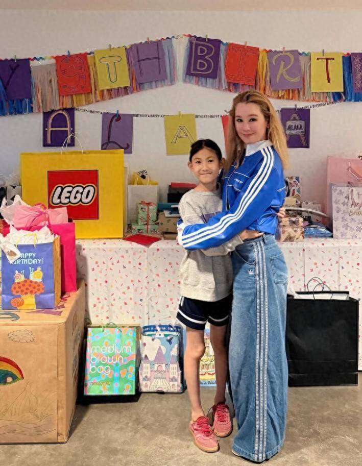 在派对的照片里,Alaia扎着俏皮的马尾辫,穿着一件灰色T恤👕和黑色短裤🩳,简单却舒适的『穿搭』让她显得格外清新自然。她抱着姑姑合影时,嘴角微微上扬,带着些许羞涩的笑容,看上去特别可爱。她继承了超模妈妈秦舒培的优良基因,身材瘦高,个头看起来远超同龄孩子,这份身高优势让她看起来像是一个已经成年的女孩。虽然她体型纤瘦,但也因此膝盖骨显得格外突出,几乎看得出明显的高高隆起,这也成了照片中的一个小小焦点。